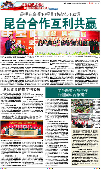 昆明在台簽10項目1協議涉160億 昆台合作互利共贏 (圖)