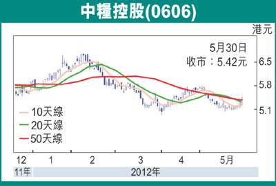 據管理層表示,現時飼料業務毛利率可達15%,中糧油將會擴展下游業務,包括拓展飼料加工業務,以滿足客戶規模化養殖對飼料的需求,同時,亦會發展甜味劑及乾麵等高附加值產品業務,連接上下游建立全產業鏈。中糧油今年預測市盈率低於9倍,作為行業龍頭,此估值並不貴,從股價逆市抗跌強,也反映其已成為資金趁低收集對象。該股近期由5.8元水平回落,預計中短期仍有力再試此阻力關。