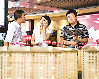 ■2012長春房地產展示交易會8日開幕。圖為看房者在了解樓盤信息。新華社