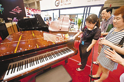 8日,北京國際頂級生活品牌(奢侈品)博覽會在中國國際貿易展覽中心開幕,參觀者在觀看一款全球限量5台的鋼琴。然而,在匯聚海內外86個知名奢侈品牌的展會現場,來自中國本土的品牌卻十分鮮見。對外經貿大學對2千多名中國奢侈品消費者的調查顯示,約68%的受訪者認為中國不可能產生奢侈品牌。 ■新華社