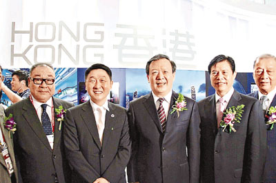 ■浙江省省長夏寶龍、商務部副部長鍾山與貿發局副總裁周啟良及港商合影。