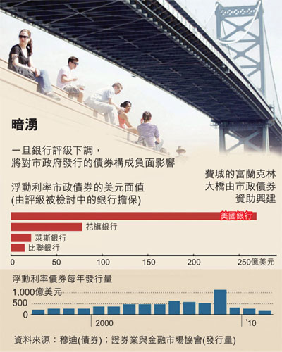 為免蒙受損失,貨幣市場基金近期減少向銀行借貸,城市、州縣亦紛紛轉換合作機構。因市場早有準備,降級帶來的即時影響預料不會太大。有指,穆迪計劃調低如美銀及花旗等主要金融機構的短債評級,從「Prime-1」降至次一等的「Prime-2」。
