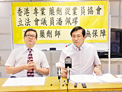 ■葉炳添(右)批評醫管局以配藥員認可人士取代藥劑師。香港文匯報記者何嘉露 攝