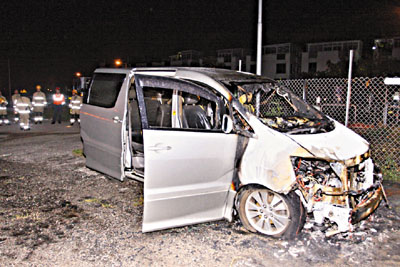 現場為落馬洲青山公路米埔村一間地產公司門前空地,昨凌晨2時許,空地上一輛7人車突冒煙著火,火光熊熊濃煙密布,村民發現報警。消防員開喉灌救撲滅火勢,但7人車已嚴重焚毀。警方事後聯絡該車車主到場助查,車主聲稱不明白被縱火燒車原因。