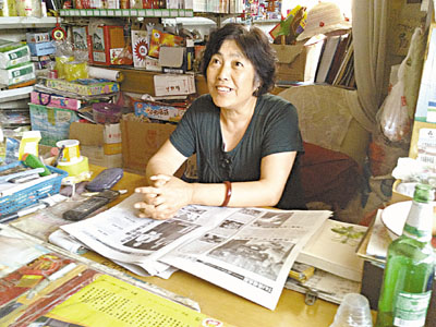 ■初嘉玲老師翻看報道王亞平的報紙。 于永傑 攝