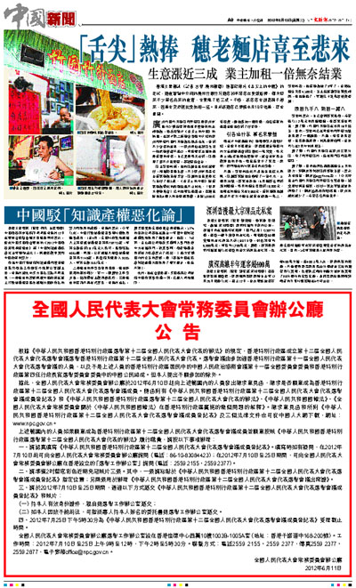 四、2012年7月25日下午5時30分為《中華人民共和國香港特別行政區第十二屆全國人民代表大會代表選舉會議成員登記表》受理截止時間。