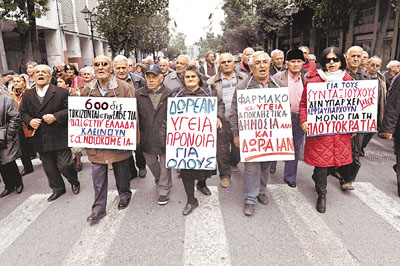 ■希臘長者上街示威,抗議政府向社保開刀。 資料圖片