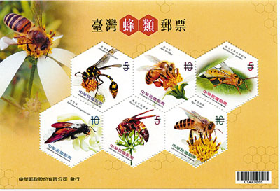 據悉,預定7月12日發行的六角形郵票屬於特種郵票,將發行小全張一張,6枚面值共新台幣45元。郵票以各種蜂類為主題圖案,包括虎蜾蠃、西洋蜂、松毛蟲黑點瘤姬蜂、黑竹蜂、雙金環虎頭蜂及東方蜜蜂等。