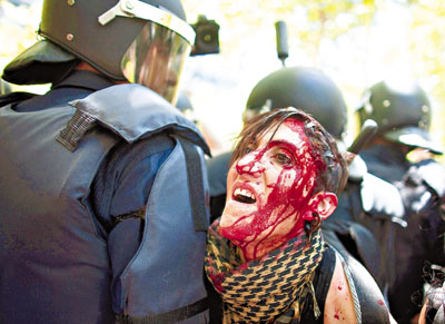 警察驅散示威者,他們則投擲石頭和膠樽還擊。警方稱,有人衝擊工業部大樓門前的防線,5人被捕。遭橡膠子彈打傷腿部的67歲退休礦工岡薩雷斯稱,他們當時和平遊行,準備前往聆聽工會領袖發言,警察卻沒預先警告,不分青紅皂白向他們開火,他們紛紛走避,情況混亂。