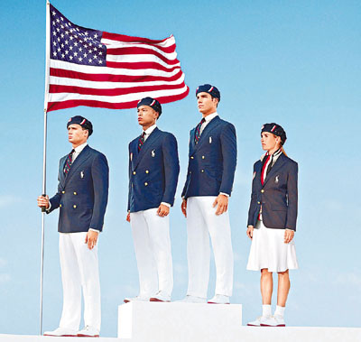 著名美國時裝公司Ralph Lauren設計、原定於倫敦奧運開幕禮使用的美國奧運隊隊服(見圖),日前被揭是中國製造,引起部分美國國會議員不滿。參議院多數黨領袖里德聲稱,美奧委會應感羞恥,更表示該批制服應「一把火燒掉」。美奧委指相關言論小題大做,外界亦批評將奧運制服「政治化」相當可笑。