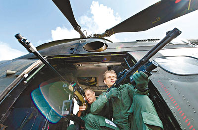 英國皇家空軍昨表示,將於倫敦奧運期間,針對任何違反禁飛規定的飛機,採取「致命武力」應付,包括出動「颱風」式戰機及配備狙擊手的直升機(上圖)巡邏,截擊任何闖入禁區的飛機。 ■《每日郵報》/綜合外電消息