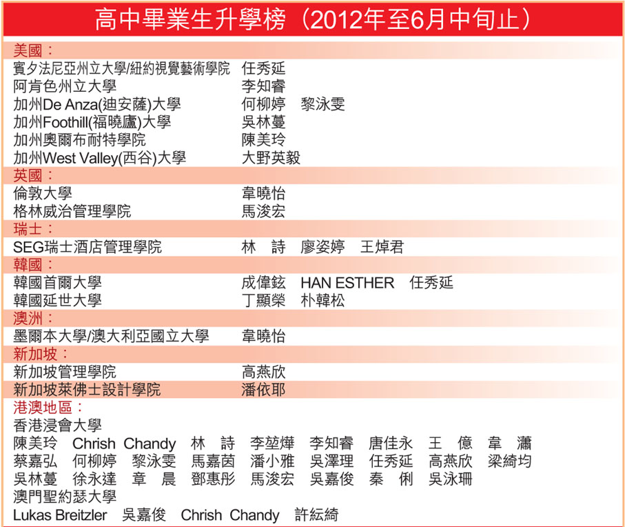 高中畢業生升學榜(2012年至6月中旬止) (2012-07-18) (圖)