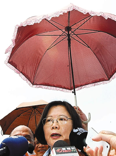 ■蔡英文設個人基金會,實際上是謀2016年能東山再起。圖為她日前在戶外接受媒體訪問。 資料圖片
