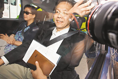 ■麥齊光夫婦昨乘車到北角廉署總部報到。