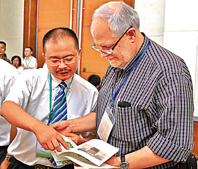 ■了翁茶業董事長鄒會明向國際茶葉委員會主席介紹公司情況