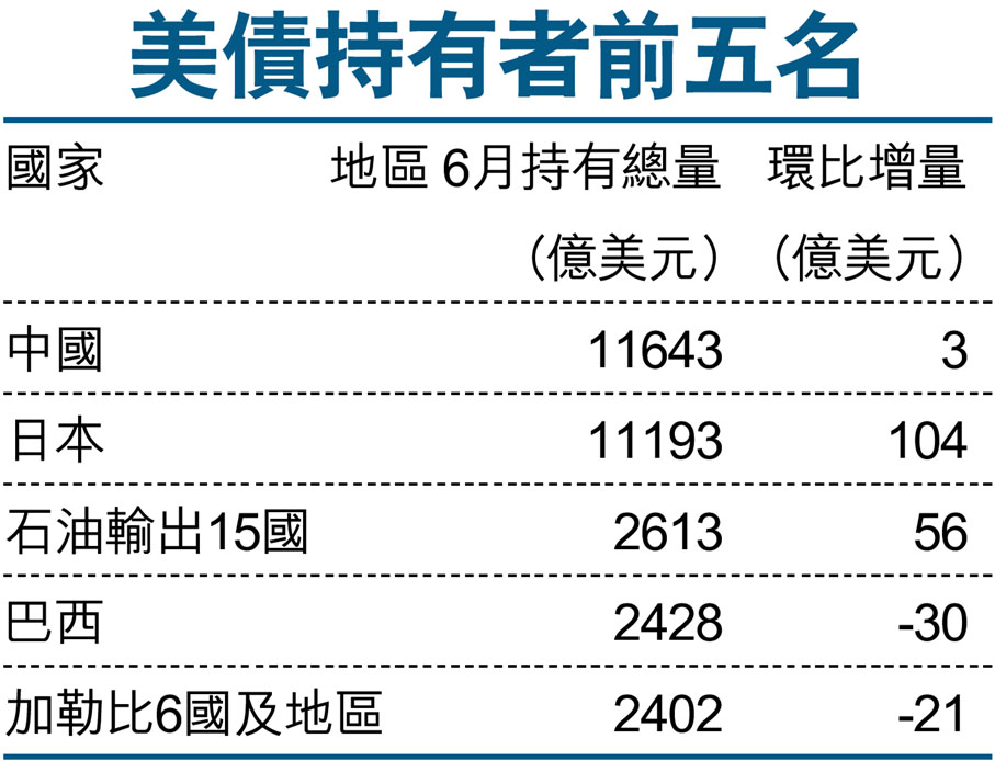 華6月增持3億美債 (圖)