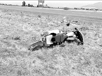 一名42歲中國籍遊客,前日在美國猶他州特里蒙頓以南駕駛大馬力的哈利電單車時,突然失控剷上路中心石壆,再撞上路旁護欄(上圖),他被拋出車再反彈至路面,搶救數小時後不治。