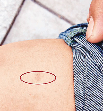 ■北京一名男子聲稱,乘坐的士時被藏在車內的注射器針頭刺傷。圖為他展示的傷口。網上圖片