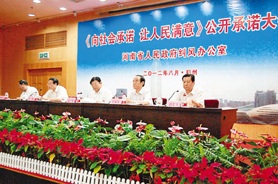 ■河南省政府召開《向社會承諾讓人民滿意》公開承諾大會。香港文匯報實習生王蕊 攝