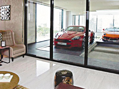 大都市寸金尺土,要找個地方泊車甚艱難,新加坡發展商高鴻置地最近就在名店臨立的烏節路附近,興建了一個據報是亞洲首個、主打「把車停到家裡」的30層高豪宅樓盤,被描述為「天上車房套房」,每層的業主只要觸摸地下室入口處的生物特徵識別觸摸板,就可用升降機直接將愛車運到客廳旁。