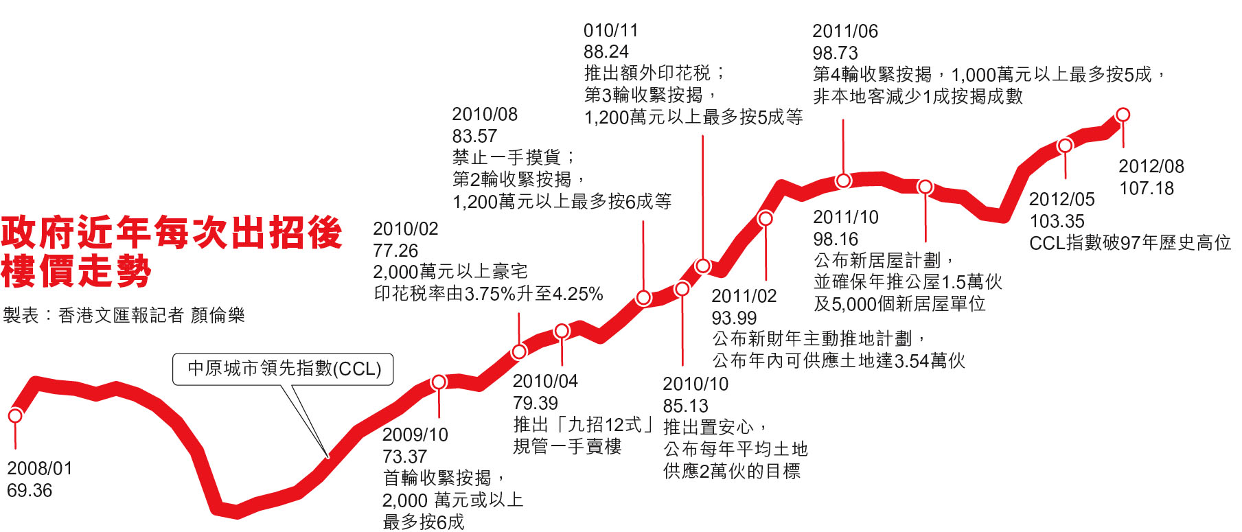 政府近年每次出招後樓價走勢 (圖)