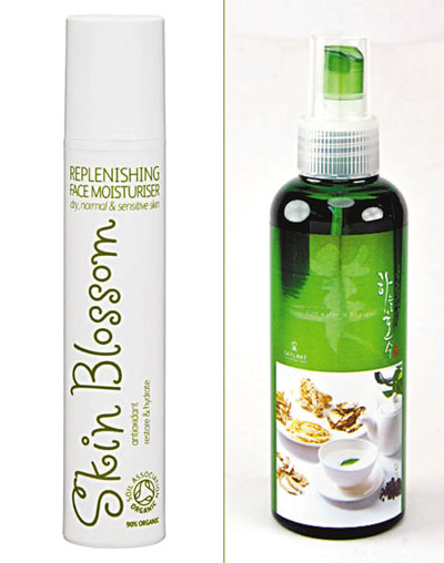 Skin Blossom抗氧滋潤面霜(左圖,售價:HK$220)的90%為有機成分,98.85%為天然植物成分,含有機乳木果及荷荷巴油,持久滋潤肌膚,防止肌膚乾燥及皺紋形成,並能促進輕微炎症癒合,回復亮麗自然肌。另外,天池枝韓方草本全效精華露(右圖,售價:HK$335)亦無添加任何化學成分,100%天然,有效收細毛孔,加強保濕效果。
