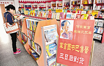 ■中國作家莫言問鼎2012年諾貝爾文學獎的消息在催生其作品熱賣。 新華社