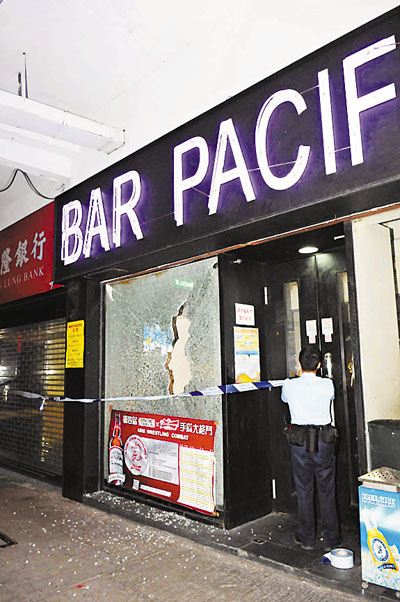 香港文匯報訊(記者 杜法祖)在全港各區均有分店的一個連鎖式酒吧集團,昨凌晨四間分店在半小時內遭連環刑毀,其中在九龍城聯合道分店,4名兇徒消遣後借醉不滿意拳手服務,以早已準備的鐵筆化作「標槍」飛擲,擊碎大門玻璃,其後在黃大仙鳳德道、彩虹道及機利士北路三間分店,櫥窗玻璃亦遭差不多相同手法先後毀壞,案中有2名無辜女顧客受輕傷,警方不排除案涉黑幫,已將四宗刑毀案件合併,交由九龍城警區反三合會行動組跟進。