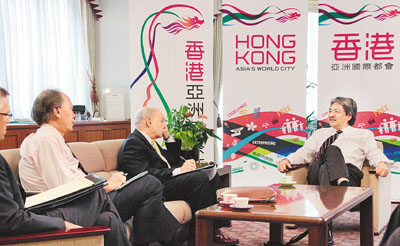■香港文匯報訊 (記者 鄭治祖) 財政司司長曾俊華昨日在東京以中國代表團成員身份,出席國際貨幣基金組織和世界銀行集團年會,隨後與國際貨幣基金組織亞洲及太平洋部主任Anoop Singh和副主任Markus Rodlauer共晉午餐。圖為曾俊華與評級機構穆迪亞洲及中東副總裁Thomas Byrne談論香港經濟的最新情況。