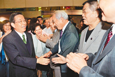 ■謝長廷表示,他大陸行的總體戰略,就是讓民進黨重返執政。圖為謝長廷(左)結束大陸行返台,綠營人士來接機。中央社
