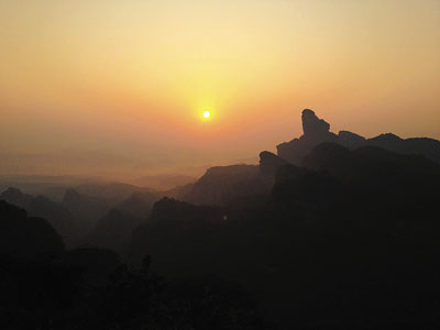 今次筆者取較易的方法,清晨5點起床前搭纜車上寶珠峰,走到韶音台時,太陽還未出來時我們邊拍照邊等待,從沒有這麼期待日出的來臨,6點左右,紅日就慢慢冒出頭來,令遊客極度興奮,紛紛把握機會拍照。不一會,紅日已變成太陽,慢慢地升起,放射出金色的光芒在晨霧縈繞的丹霞山脈映襯下,美不勝收,令人難以忘懷。而且的確比起在香港去鳳凰山觀看日出舒服多了,所以建議到丹霞山不能不看日出,就算早起也值得。