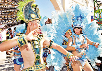 邁入第11年的「夢想嘉年華大遊行」活動20日在台北登場,來自法國、巴西等國各具風格的創意造型及60個當地團體參與,共同譜出令人血脈賁張的華麗森巴舞。 ■中央社