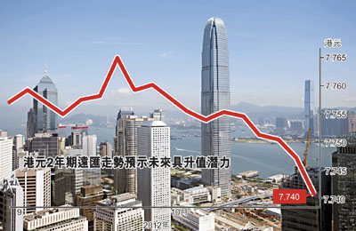 香港文匯報訊 (記者 方楚茵) 港匯強勢不減,港元昨繼續在7.7500兌1美元的強方兌換保證附近波動;2年期遠匯昨早更觸及今年最高點的7.7392,反映投資者預期兩年後1美元只可換到7.7392港元。市場又有流言傳出,有對沖基金準備再賭聯匯脫u,港元兌美元有一次性升值30%的可能性。