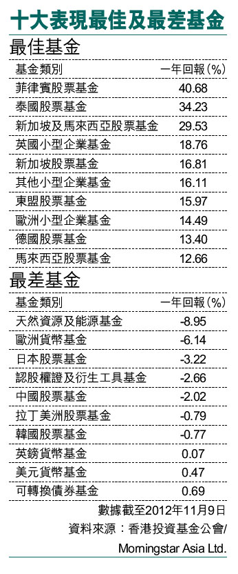 十大表現最佳及最差基金 (2012-11-21) (圖)