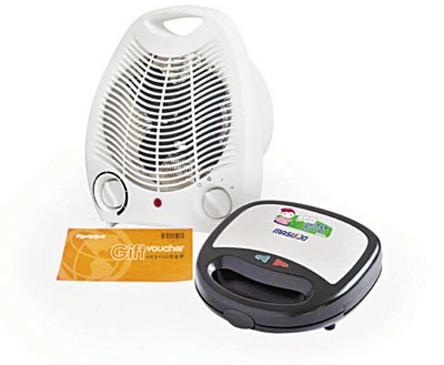 Megabox特別為本報讀者率先送出聖誕禮品,禮品包括三文治機(HK$179)、暖風機(HK$159)及GigaSports HK$100現金券,總值HK$438,名額共7位。如有興趣的讀者,請剪下文匯報印花貼於信封背面,連同HK$2.8回郵信封郵寄至香港仔田灣海旁道7號興偉中心3樓副刊時尚版收,封面請註明「MegaBox聖誕送禮」,截止日期12月2日,先到先得,換完即止。