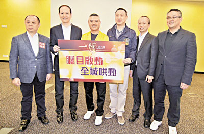 ■長實新盤一號.西九龍下月中推售,黃思聰(左三)昨日委任地產代理接受認購人士登記。張偉民 攝