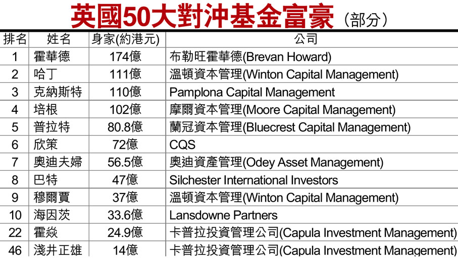 英國50大對沖基金富豪(部分)