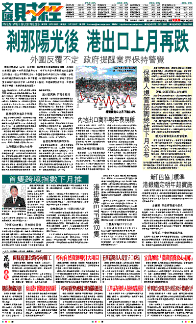 香港文匯報訊(記者 涂若奔)由於歐美市場環境再度趨弱,本港出口重現負增長。政府統計處昨公布,今年10月份本港整體出口貨值為2,970億元,較去年同期跌2.8%,不僅遠遜於9月份15.2%的升幅,亦較此前市場預期的2%為差。除了泰國、台灣和中國內地外,輸往大部分主要目的地的出口均下跌。政府發言人指出,外圍經濟反覆不定,外貿環境甚不明朗,業界仍需保持警覺。
