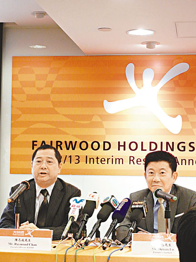 ■對於最低工資上調至30元,陳志成(左)相信僅18%至20%員工加薪,對集團影響輕微。旁為主席羅開揚。黃詩韻 攝