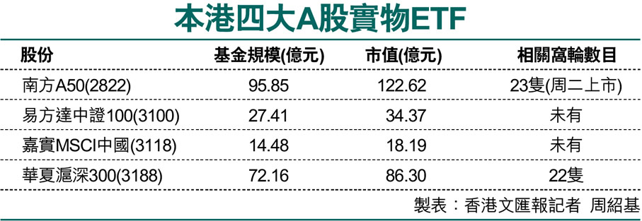 本港四大A股實物ETF (圖)