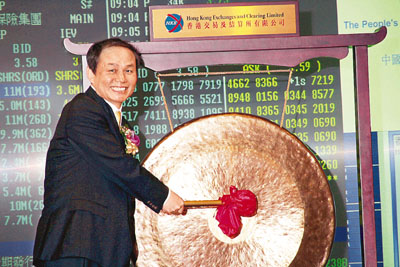 ■人保集團首日股價表現亮麗。董事長吳焰昨主持上市鳴鑼儀式。香港文匯報記者張偉民 攝