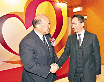 ■袁國強(右)表示,現屆政府會先處理民生、經濟問題。曾慶威 攝