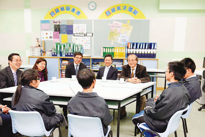 ■吳克儉與有特殊學習需要的學生傾談,聆聽他們分享學習生活。