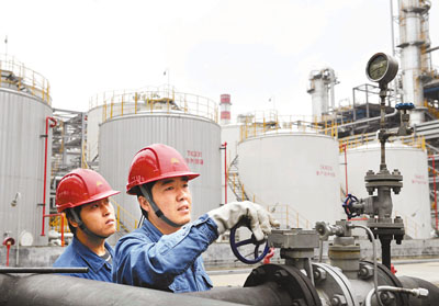 ■中企海外併購不遺餘力,尤以能源和電力行業更見積極,併購較去年增22%。圖為中石油欽州千萬噸煉油廠的外操員工正在巡檢儀表。 資料圖片