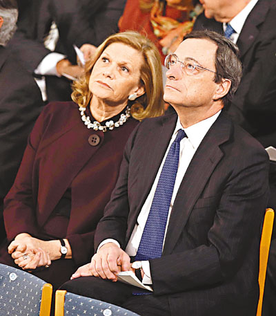 ■德拉吉日前與太太共同出席諾貝爾和平獎頒獎禮。路透社