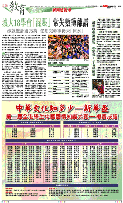 由城大學生會編輯委員會出版的《城大月報》近日就揭露了有關情況。報道顯示,該校60多個學會組織中,就有18個組織有賬目混亂的情況,其中不少組織仍未收齊迎新營費用,又或者未有向學生會申報所舉辦的活動收支等。其中最令人側目的是資訊系統學科聯會,共有逾16萬元的款項去向不明。另外,會計學學科聯會、管理學學科聯會等亦未有向學生會申報活動收支,以至涉及款項難以預計。