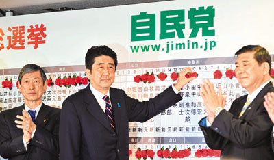 安倍晉三極有可能在本月26日的特別國會上再度被提名出任首相,在選舉中奪得超過320席,贏得壓倒性勝利的自民、公明兩黨,也即將組成和啟動聯合政權。昨日選舉結果公佈後,安倍對日本媒體表示,自民黨執政後將盡快改善日中兩國關係。但中國社會科學院日本研究所外交室主任呂耀東向本報指出,近年日本政壇整體保守化、右傾化趨勢越來越明顯,而對華強硬也正成為一種大的趨勢,其中突出表現在釣魚島問題上。