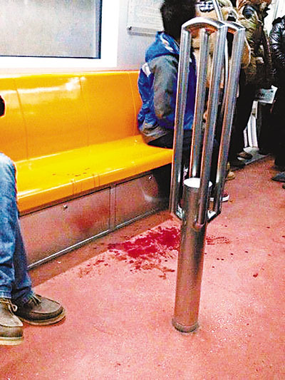 ■北京地鐵傷人案,車內血跡斑斑。網上圖片