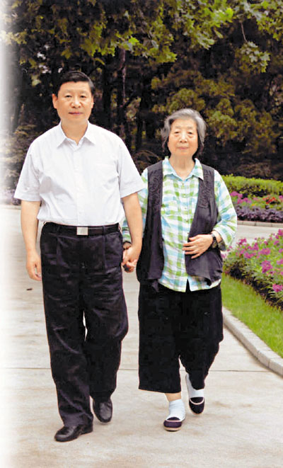 習近平的母親齊心也是一位老幹部、老黨員,已近90歲高齡。習近平非常孝敬母親。每當有時間陪她在一起吃飯後,他都會拉著母親的手散步,陪她聊天。