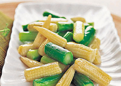友人中有幾位是虔誠居士,事佛頗為精懇,每逢佛誕或特殊節日,都要參加齋會。我多次聽聞他們誇讚淨筵上的齋菜製作精美,滋味獨特,不禁動了心,遂隨行去吃了一次。其中有一道羅漢齋,是用香菇、腐竹、木耳、蓮子之類的瓜果蔬茹烹就,另添有幾個玲瓏精巧的玉米筍作為點綴,食之脆嫩,極為爽口。一道看似平常的菜式,有了玉米筍的參與,也就具有了別樣的韻味和風致。